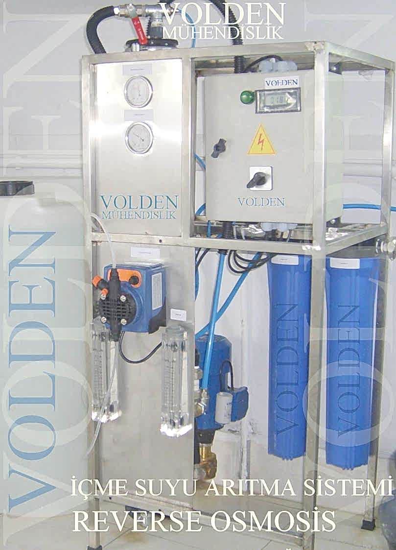 REVERSE OSMOSİS RO:Klasik arıtım sistemlerinin yetersiz kaldığı sularda (Deniz suyu, iletkenliği yüksek kuyu suları, kaynak suyu olmayan içme suları vs.) uygulanan Ters osmos prensibi çok üstün nitelikli su arıtımı yapmaktadır. Ters osmos sisteminin çalışma prensibi, cihaz üzerinde bulunan yarı geçirgen membranlar sayesindedir. Su basınç farkıyla membranlar üzerinde bulunan 5 angstrom büyüklüğündeki gözeneklerden geçerek saflaştırma işlemi gerçekleştirilmiş olur. Toplam çözünmüş madde oranları yüksek olan sularda alternatifsiz kullanımı olan Ters Osmos üniteleri, her alanda uygulanabilen profosyonel bir arıtım yöntemidir. İçme suları kullanımında yüksek saflıkta su üretir. Özellikle böbrek taşları olan hastalar için ideal bir tıbbi cihaz niteliğini taşır. RO Arıtma Oranları Asbest % 98-99 Kurşun % 96-98 Arsenik % 94-96 Kalsiyum % 95-98 Alüminyum % 96-98 Krom % 96-98 Amonyum % 90-95 Kadmiyum % 95-98 Bikarbonat % 90-95 Magnezyum % 95-98 Bakır % 97-98 Manganez % 97-98 Baryum % 96-98 Nitrat % 90-95 Brom % 90-95 Nikel % 97-99 Bakteri % 99 Potasyum % 94-97 Borat % 50-55 Silis % 92-95 Civa % 95-97 Siyanür % 92-95 Çinko % 97-99 Silikat % 94-96 Demir % 97-98 Sülfat % 97-98 Florür % 93-95 Sodyum % 89-90 Fosfat % 98-99 Sertlik % 96-98 Gümüş % 95-97 Haşerat Önleyiciler % 95-98 Klorür % 90-95